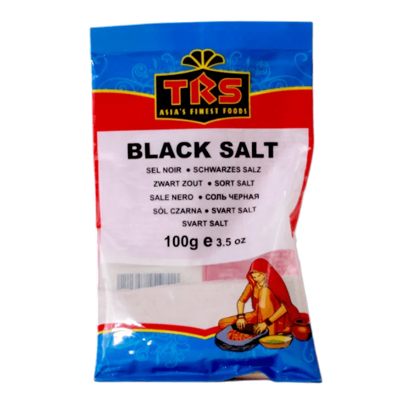 TRS Black Salt Powder, also known as Kala Namak, is a raw black salt with a unique sulfuric taste.