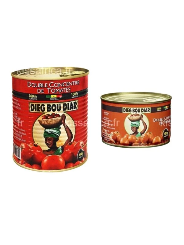 Dieg Bou Diar Double concentré de tomates is a popular Senegalese tomato paste known for its intense flavor and use in traditional dishes like thieboudienne. It's a double-concentrated paste, meaning it's made with a high concentration of tomatoes, giving it a rich, thick consistency and deep red color. The product is widely available in cans and is a staple in many West African kitchens.