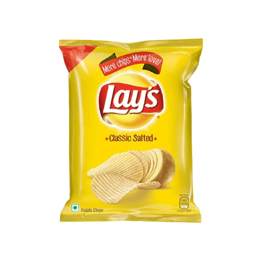 Lay's Classic Salted potato chips, a popular snack in India, are made with quality potatoes, cooked in edible vegetable oils, and seasoned with salt. They are known for their simple, satisfying taste, letting the flavor of the potato shine through. The chips are a vegetarian snack and are trans-fat free.