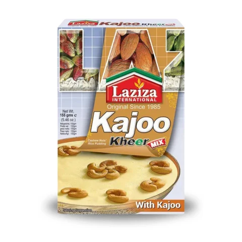 Laziza Kajoo Kheer is a traditional South Asian dessert, a type of rice pudding, that features cashews and is known for its creamy texture and rich, nutty flavor. It's a popular sweet dish, especially during festive occasions, and the Laziza brand offers a convenient mix to simplify its preparation.
