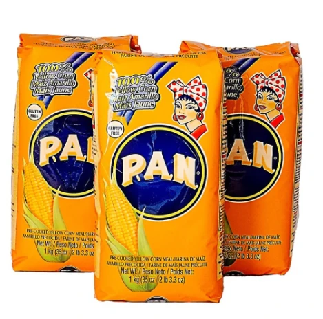 Cette farine de maïs de marque PAN est fabriquée à partir de maïs jaune moulu et bouilli. Ajoutez de l'eau et vous pouvez commencer immédiatement à travailler votre pâte !