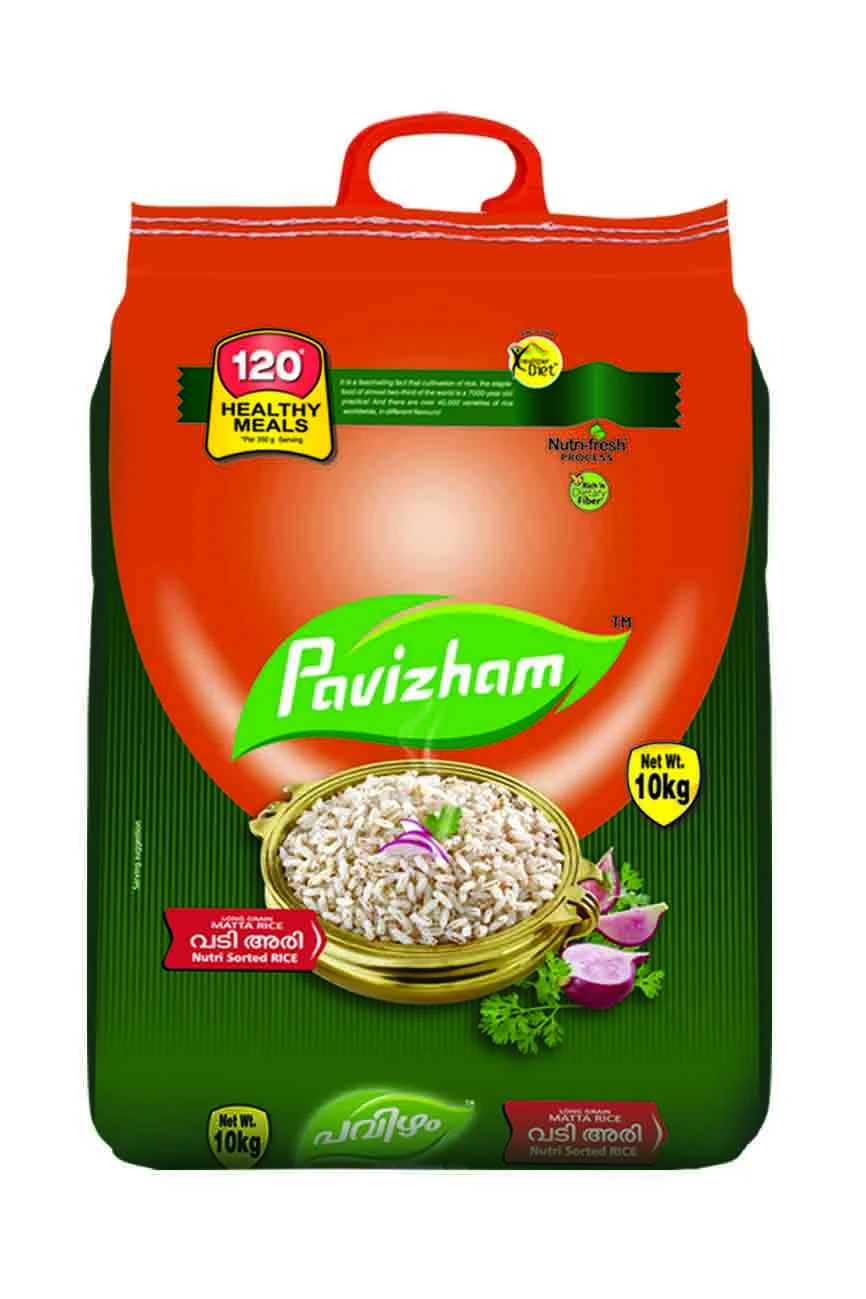 Pavizham rice is a brand and variety of Matta rice, also known as Kerala red rice or Rosematta rice, characterized by its unique reddish-brown color, bold/coarse grains (long or short), earthy flavor, and high fiber content. The parboiled process retains its nutrients and natural goodness, making it a healthy and traditional choice for South Indian cuisine, particularly in Kerala, where it is sourced from nutrient-rich soils.
