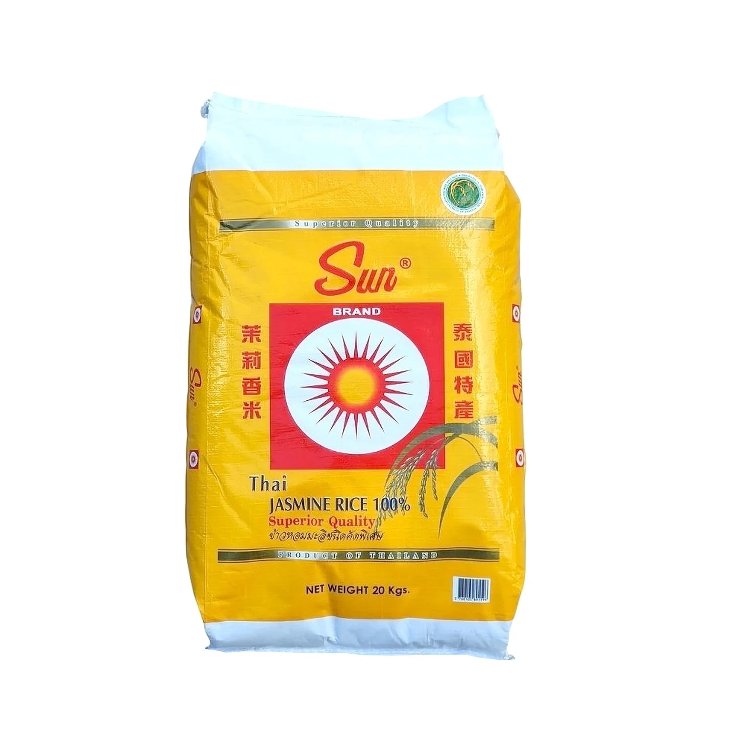"Sun" could be referring to the brand name "Tropical Sun" which is associated with jasmine rice, or it could be referencing the drying process of jasmine rice.